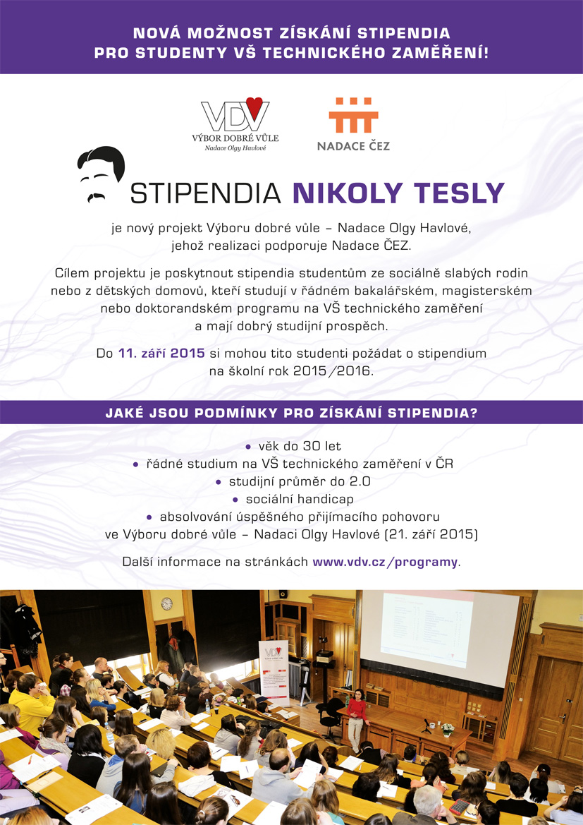 Stipendia Nikoly Tesly je nový projekt Výboru dobré vůle, jehož realizaci podporuje Nadace ČEZ.
